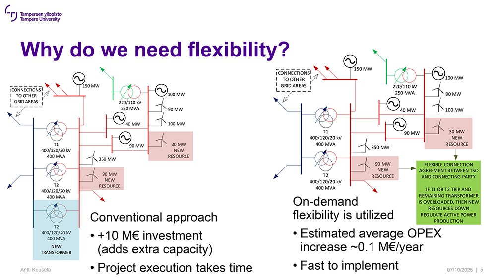 Normaalitilanteessa verkossa riittäisi siirtokapasiteettia uudelle tuotannolle, mutta silloin verkon käyttövarmuuskriteerit ylittyisivät. Jos toinen muuntaja vikaantuisi, voisi alueen sähköverkko kuormittua liikaa. Perinteinen tapa ratkaista ongelma on rakentaa sähköasemalle yksi uusi muuntaja. Tämä olisi noin kymmenen miljoonan euron investointi. Lisäksi uuden muuntamon rakentaminen vie aikansa, mikä viivästyttää hankkeen toteutumista.