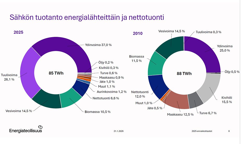 Tuulisähkö on tällä hetkellä toiseksi suurin sähköntuotantomuoto. Sen osuus oli viime vuonna 26,1 prosenttia suomalaisesta sähkönhankinnasta.