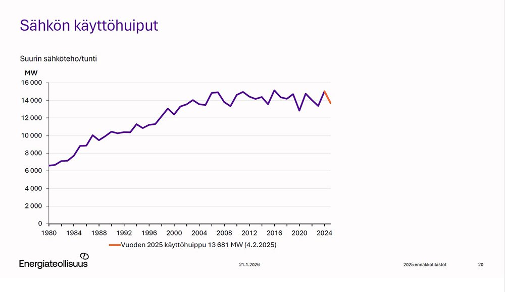 Sähköjärjestelmä on muuttunut viime vuosien aikana nopeasti. Kyllä — ulkolämpötila ja teollisuuden suhdanteet ohjaavat yhä sähkönkäyttöä, mutta niiden rinnalle on hiipinyt muitakin ilmiöitä. Kaukolämmöntuotannon sähköistyminen, datakeskukset ja sähköautojen lataaminen näkyvät ja tuntuvat sähkönkäytössä. Sähkön hintakin ohjaa entistä enemmän sähkönkäyttöä, kun pörssisähkösopimukset yleistyvät.
