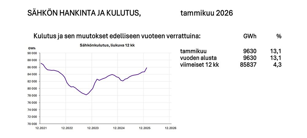 Tammikuussa ryhmä muu käytti sähköä 6,6 terawattituntia. Tämä on 20,5 prosenttia enemmän kuin viime vuoden tammikuussa. Poikkeuksellinen kylmyys lisäsi lämmityksen tarvetta.