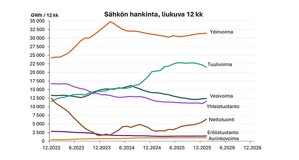 Nettotuonti — tuonnin ja viennin välinen erotus — oli kuukauden aikana 1,2 terawattituntia. Viime vuoden tammikuussa nettotuonti oli 0,3 terawattituntia. Yhteispohjoismaiset sähkömarkkinat toimivat ja yhteismarkkinoiden kapasiteetti on kaikkien osapuolten käytettävissä.